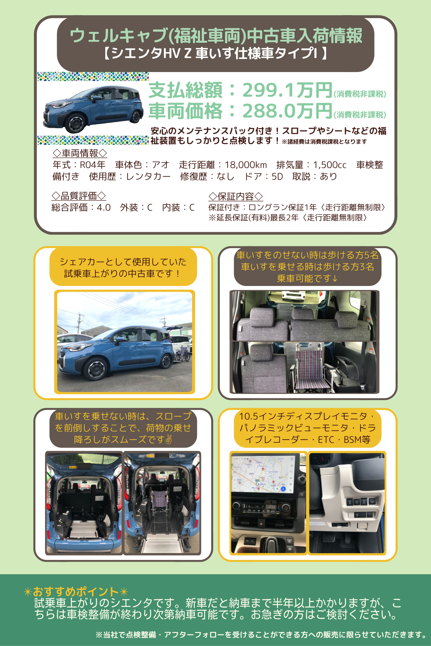 車種 シエンタHV Z 車いす仕様車タイプⅠ